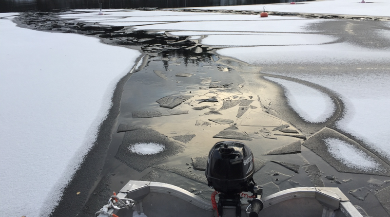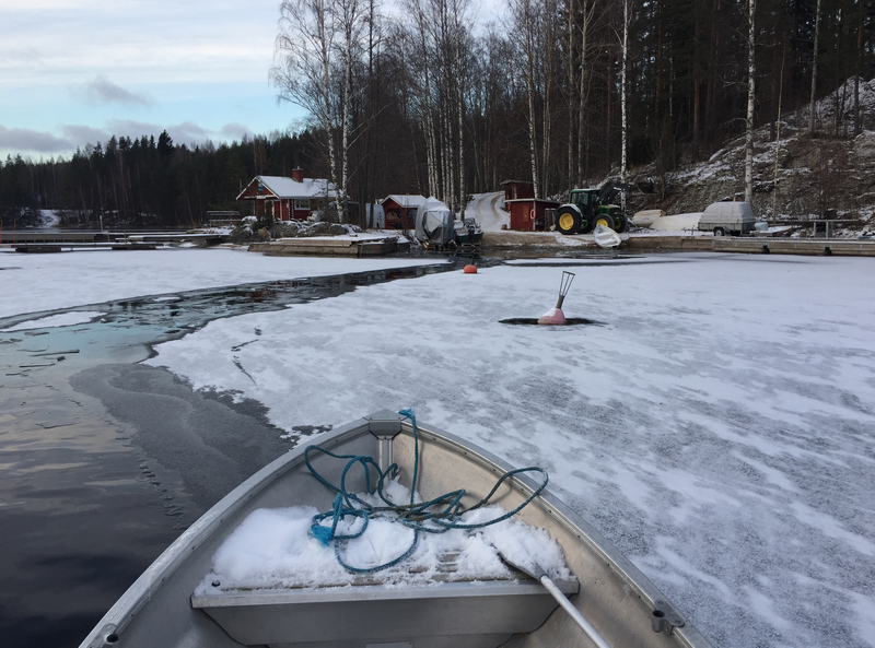 Aina kunhan jää ei ole liian paksua voitte rantautua laituriin. Myös ohkaisella jäällä voimme murtaa reitin perille.