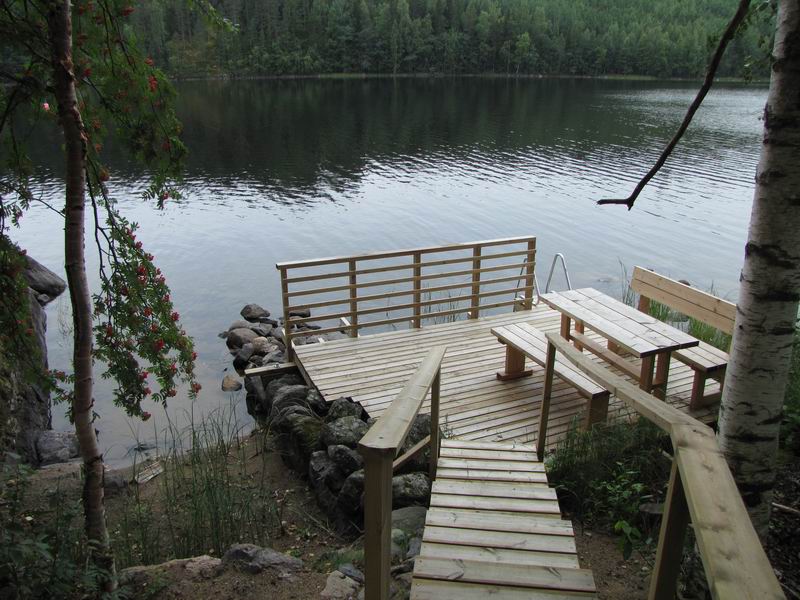 Pienikokoinen mökki lähellä rantaa ja näkymä järvelle todella hieno. Pihassa puulämmitteinen sauna, saunasta vain muutama metri rappuja pitkin laiturille, jossa myös pöytäryhmä oleskeluun. Naapurissa vierasvenelaituri, jonne osittain näköyhteys (laiturilta selkeä näköyhteys).