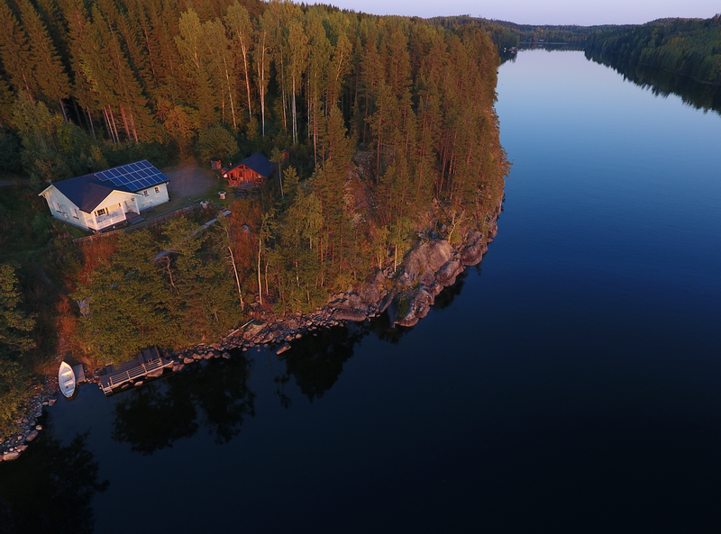 Varsinkin syksyisin myös auringonlasku näkyy hienosti pihasaunalle. Todella rauhallinen sijainti, vain rannalta näkymä Etelärinne mökille
