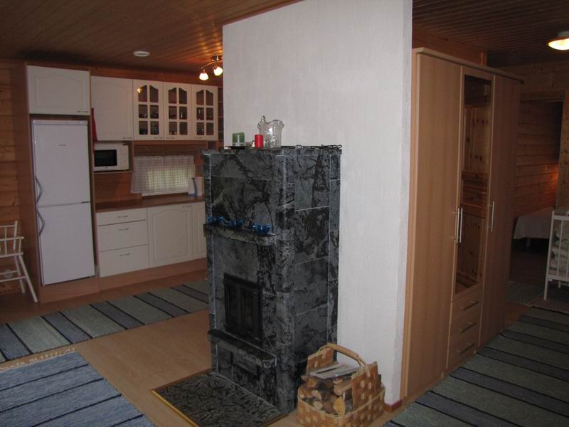Sähkövalo, -liesi, -lämmitys, -jk/pakastin, varaava takka, täydellinen astiasto, suihku, WC.