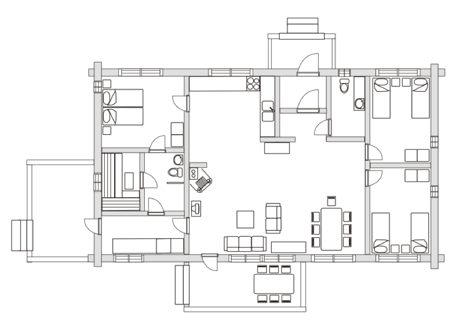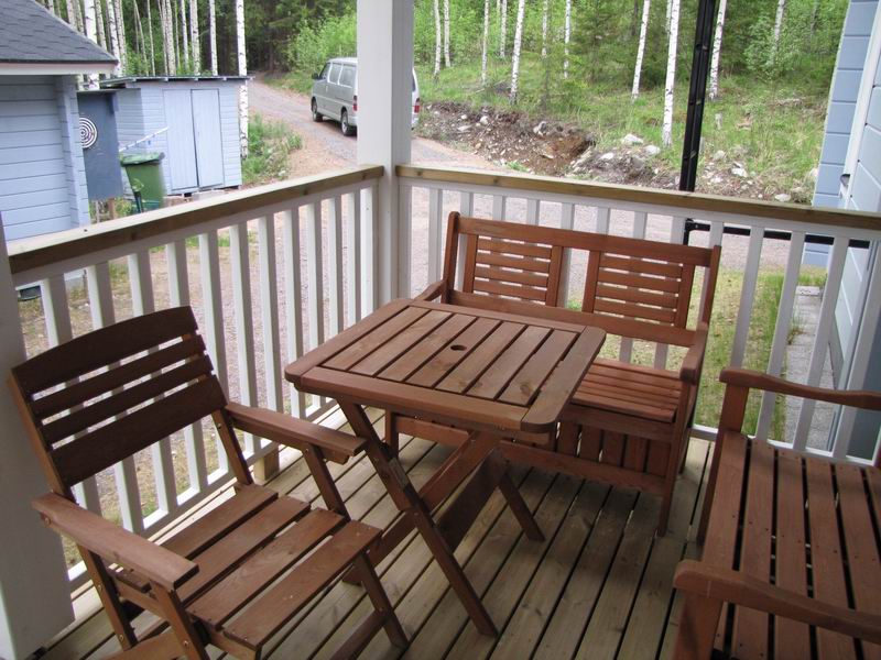 Hirsirakenteinen, valmistunut vuonna 2011, 123 m2. Tupakeittiö, jossa sohvasta saadaan lisävuode. 3 makuuhuonetta, kahdessa kaksi erillistä vuodetta, kolmannessa parivuode. Pesuhuone, puku-/kodinhoitohuone, sauna(sähkökiuas), avokuisti.