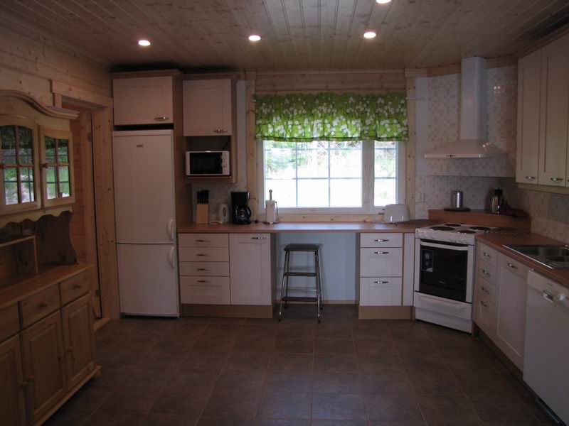 Sähkövalo, -liesi, -lämmitys, -jk/pakastin, varaava takka, täydellinen astiasto, suihku, 2*WC.
