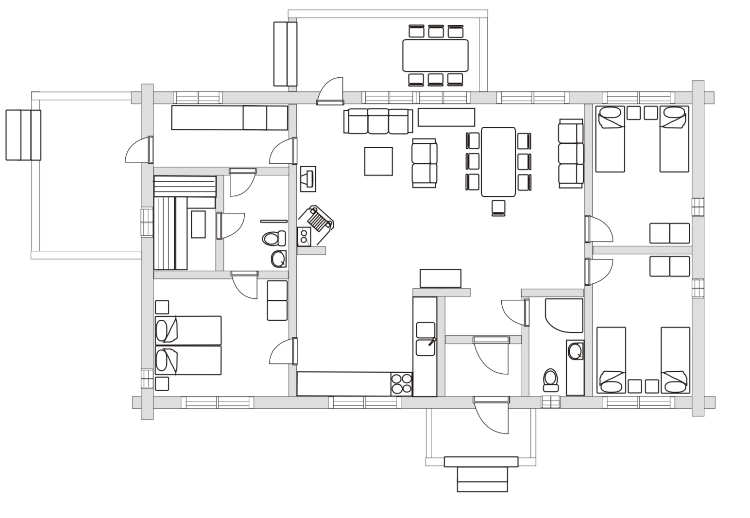 Log House 2011, a big kitchen, 3 bedrooms, each with two beds, shower room, dressing room, sauna (electric stove), two porches. Separate sauna with dressing room (sauna heated by wood).